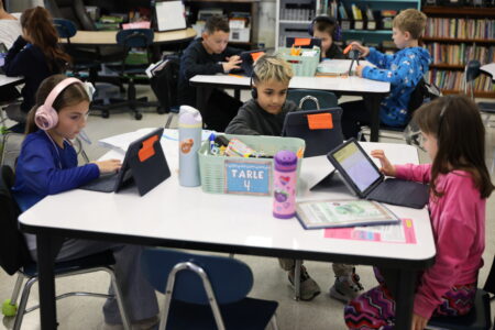 “They’re working at their pace,” she said. “The kids who can think of a definition quickly and add detail do that. The kids who are struggling a little more will use speech-to-text to get the job done at their pace.”
