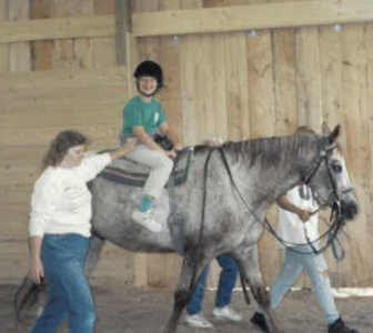 When possible, I began working with children with CP on horseback as early as age three. When positioned properly on the horse, with hips stabilized and legs gently abducted and flexed, the horse carrying the weight of the rider, the focus could then be directed on developing head and trunk control in an upright position against gravity, using key points of control.