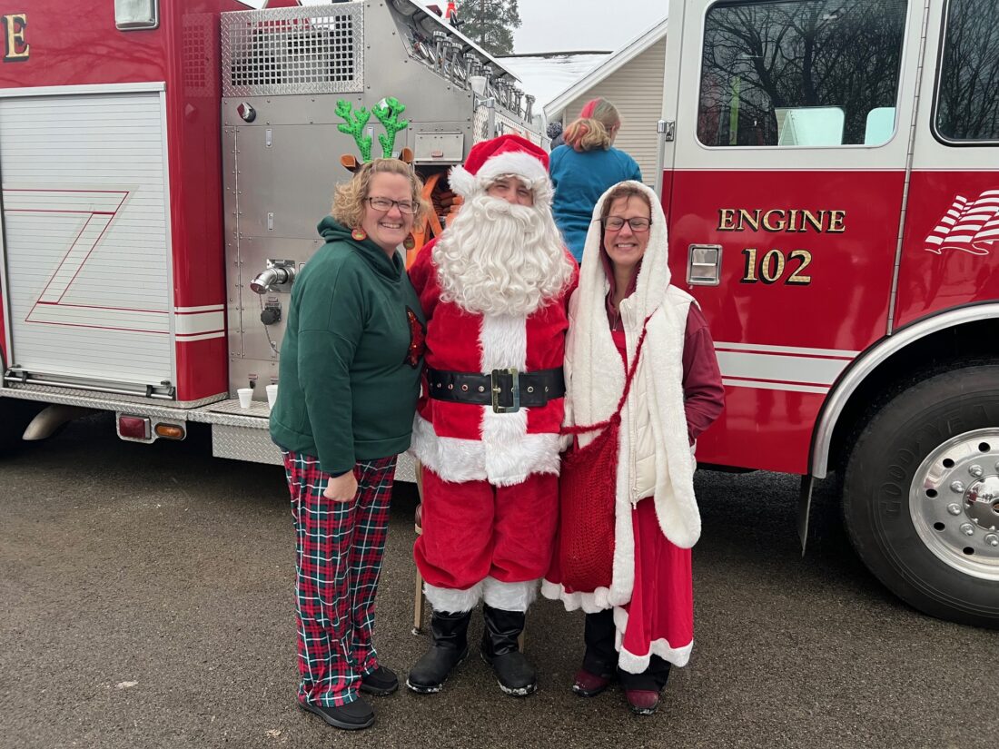 Santa arrived at the Village Park in Cassadaga on the Cassadaga Volunteer Fire Department Engine 102 to talk about Christmas with the children, and he was assisted by two helpers.