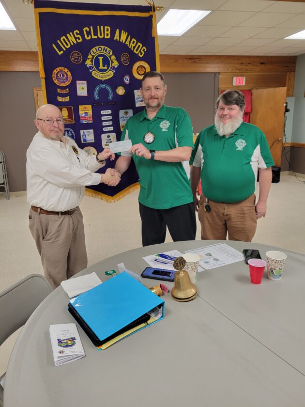 From left are Don Dove, Frewsburg Lions Club president; Craig Rodgers and Jaret Strickland.
