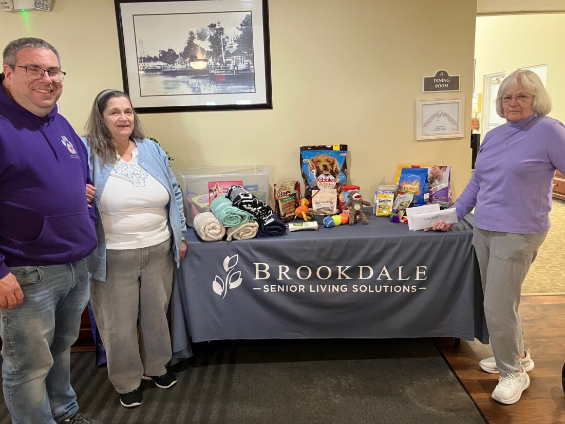 Brookdale Senior Living in Lakewood held its annual St. Patrick’s Day Cake Walk for the Chautauqua County Humane Society. Residents and guests raised more than $250 as well as collected a table full of donations for the dogs and cats. Pictured are Brian Papalia from the Humane Society, Jane Morton, and Karen Reed, residents at Brookdale.