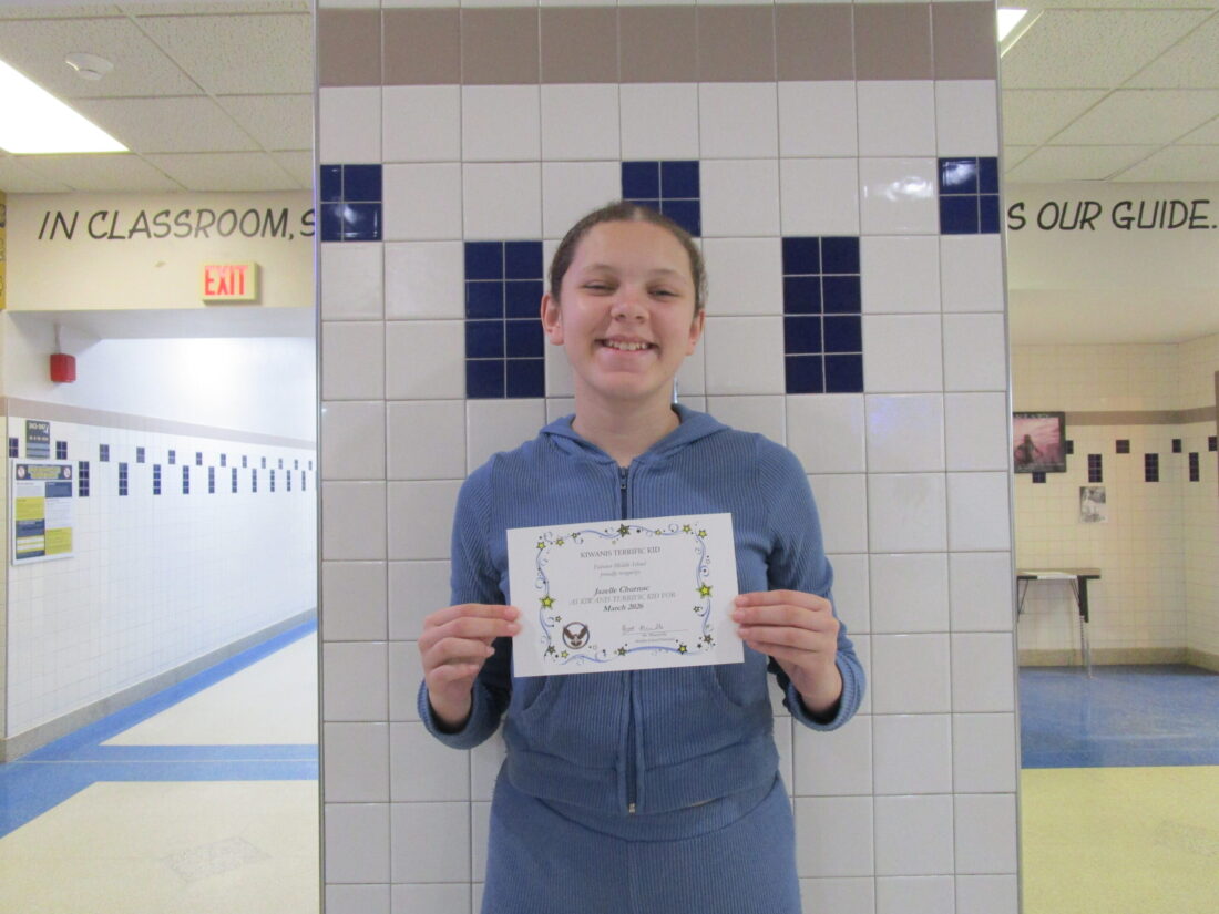Jazelle Churnac, sixth grade at Falconer Middle School, has been chosen as Kiwanis Terrific Kid for March. Jazelle enjoys dance and attends Dancing with Victoria. Her favorite subjects are math and science. Jazelle also enjoys listening to pop music in her spare time. Jazelle is the student of Xavier and Leslie Churnac of Falconer.