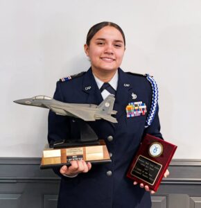 - Cadet Captain Amelia Matteson-Garza with the cadet of the year award.