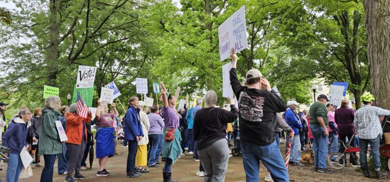 More than 100 area residents brought signs while taking part in a No Kings rally on Saturday morning in Fredonia, pictured. It began with a march at 10 a.m. from Central Avenue at Cottage Street and proceeding down Central to Barker Commons with speakers and music. Later, at about the same time ...