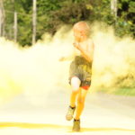 - A family crosses the finish line of the Kolors For Kallie event Monday during the annual Kallie’s Krusade. “Kallie claimed at 3 years old that yellow was her favorite color. Funny enough, yellow/gold is the color for Pediatric Cancer Awareness,” said Tara Swan. P-J photo by Daryl Simons Jr.