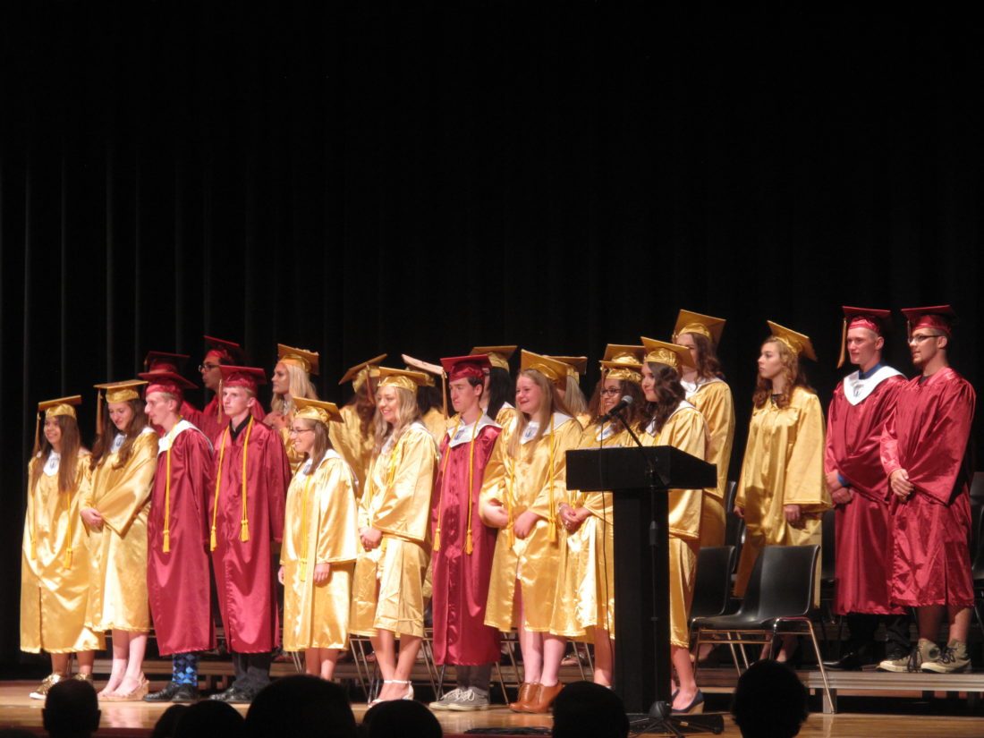 Clymer students at their graduation in 2018. The school district will no longer host baccalaureate and prayer services following a complaint from a resident. P-J file photo