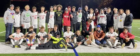 - The Maple Grove Red Dragons boys soccer team poses with the NYS Class C semifinalist plaque. P-J photo by Christian Storms