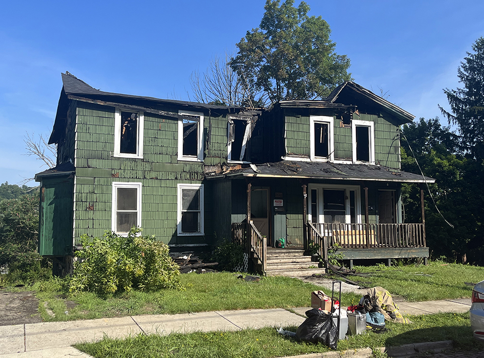 A Barrows Street home in Jamestown was heavily damaged in a fire that broke out early Thursday. P-J photo by Eric Tichy