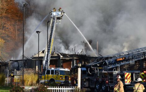 The Colony Motel in West Ellicott was destroyed when fire broke out Tuesday morning. Firefighters from numerous departments responded to the scene.