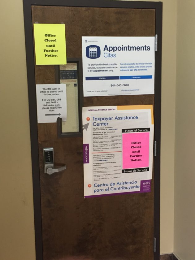 Throughout the tax season, individuals looking to frequent the Internal Revenue Service office in Jamestown for assistance have been turned away due to closed doors.