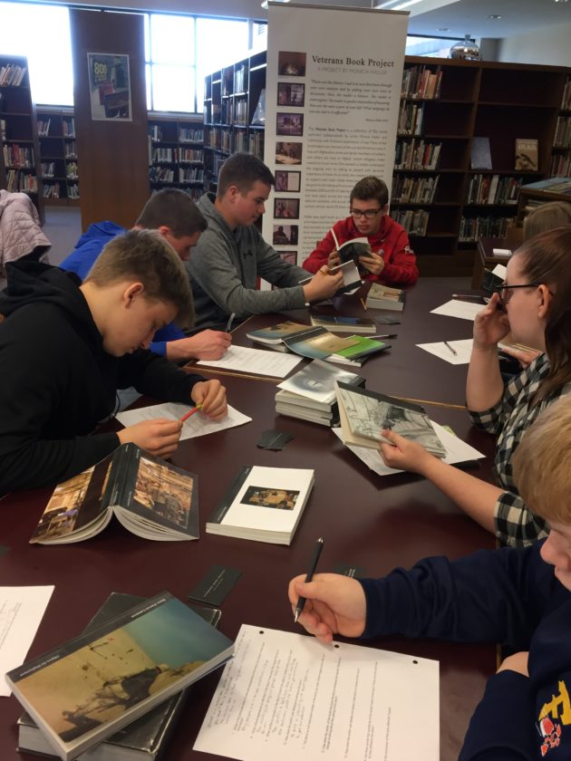Students in 10th grade English Language Arts and Global Studies participated in the Veteran’s Book Project in the Frewsburg High School Library, learning about life in a warzone from a veteran’s perspective. The exhibit is a traveling book collection which contain the stories of Iraq and Afghanistan veterans that ventures all across the county for students to experience.