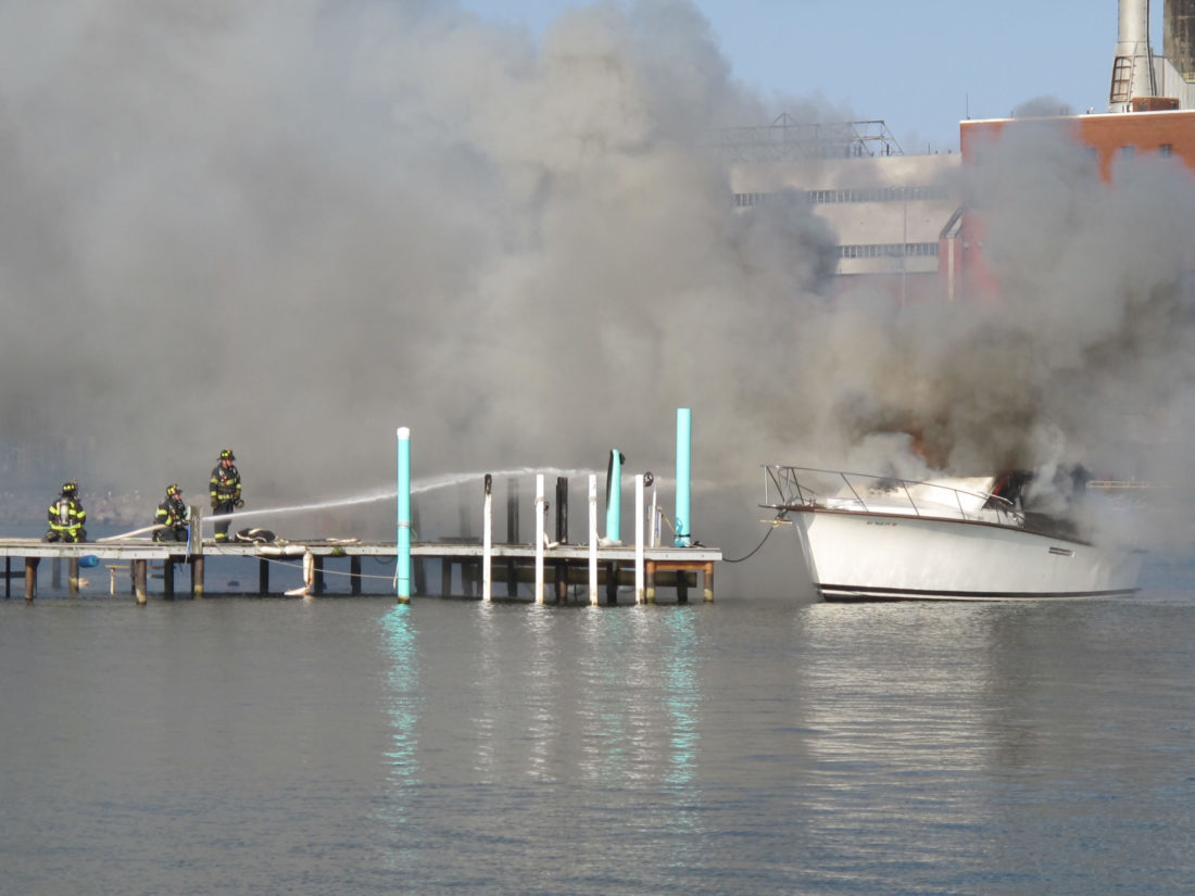 Dunkirk Fire Chief Michael Edwards reported after the 45-minute boat blaze had been contained Monday, the 41-foot vessel was never able to leave the dock. Within minutes after the engine was going, a thick, black smoke enveloped the city waterfront.