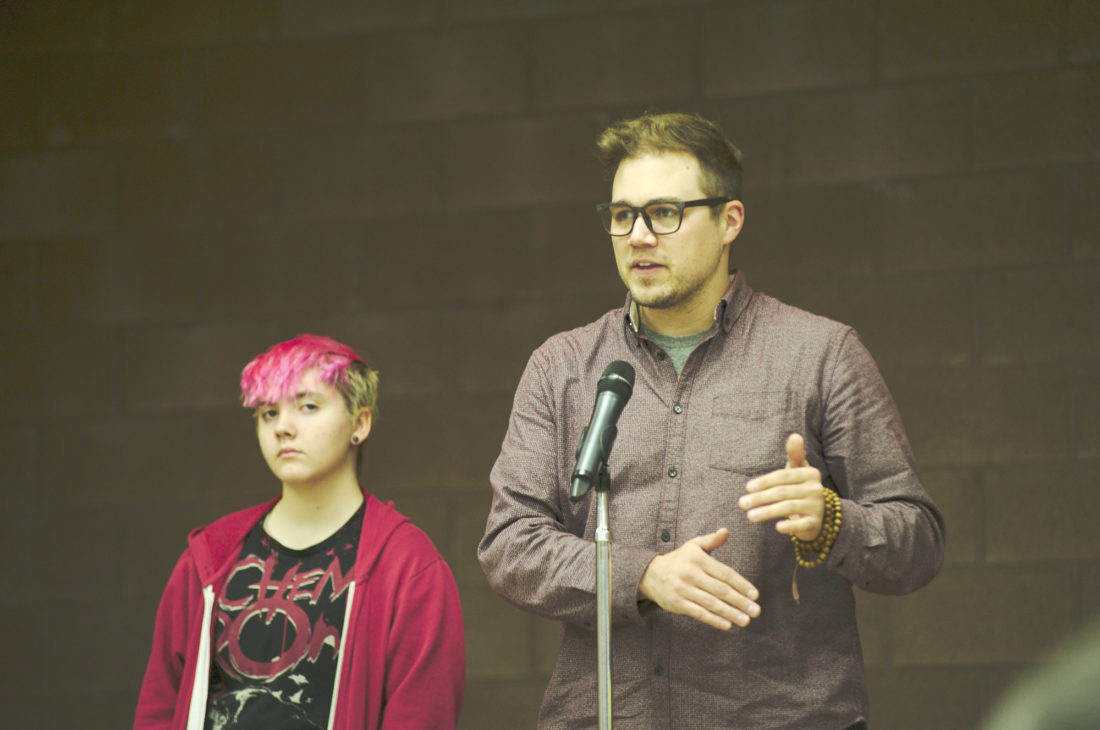 Sheridan Smith, right, and one of the students of Awareness Theater speaks at CHQ Bright Spots. Photo by Daryl Simons Jr.