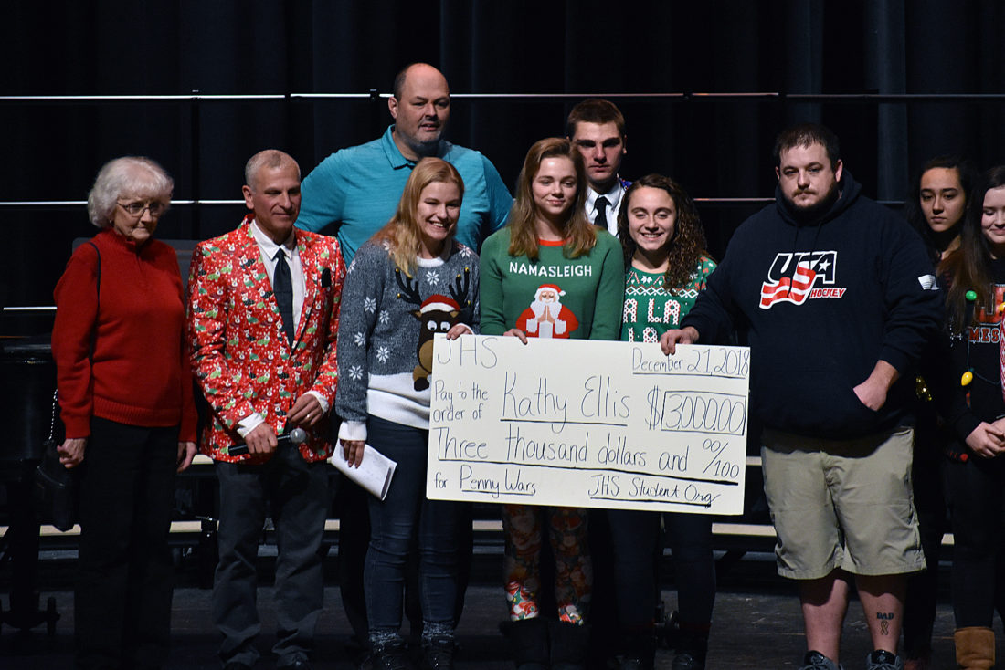 - The Jamestown High School participated in its annual Penny Wars designed to raise money for a local organization, student or faculty member. This year, the students efforts were donated to benefit Kathleen Ellis, a Jamestown teacher. P-J photo by Jordan W. Patterson