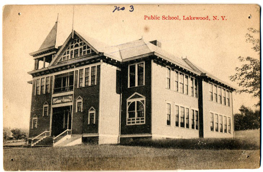 Located on Highland Avenue, this building served as Lakewood's Public School from 1893-1924. Initially, five large rooms served the primary, intermediate and grammar schools. Later, an addition created space for complete high school courses. High school students came by train from as far away as Panama and Niobe.