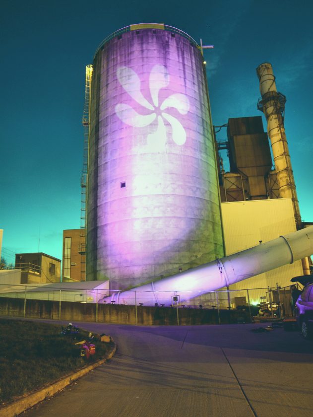 - A conceptual renderings of what the Riverwalk Illumination Project will look like when completed. The first phase of the project is to light up the Jamestown Board of Public Utilities coal silo, which is scheduled to take place this weekend during the 2019 Lucille Ball Comedy Festival. Submitted photos