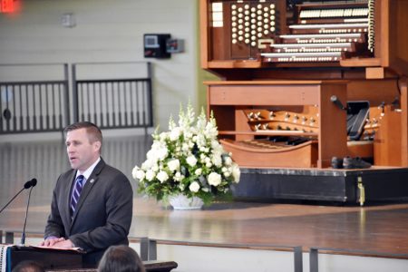 “Well, enough about Jared,” he said following much of Friday’s service memorializing the late organist. “You’ve heard about Jared. I’m going to talk about God.”