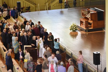 While members of the Motet Choir sang at the service, the Massey organ, which Jacobsen has been associated with for 25 years, remained mum throughout. Hill explained that it too was grieving.