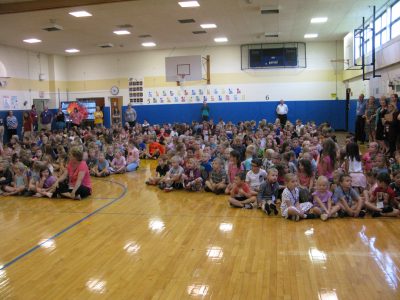 After a countdown from the students, the capsule was opened at a ceremony Tuesday, and its contents were brought out one by one. Students were picked to come up and pull things out of the box. The first girl, Greta, pulled out an old, blue police officer’s hat and a school report that was written by her own mother.
