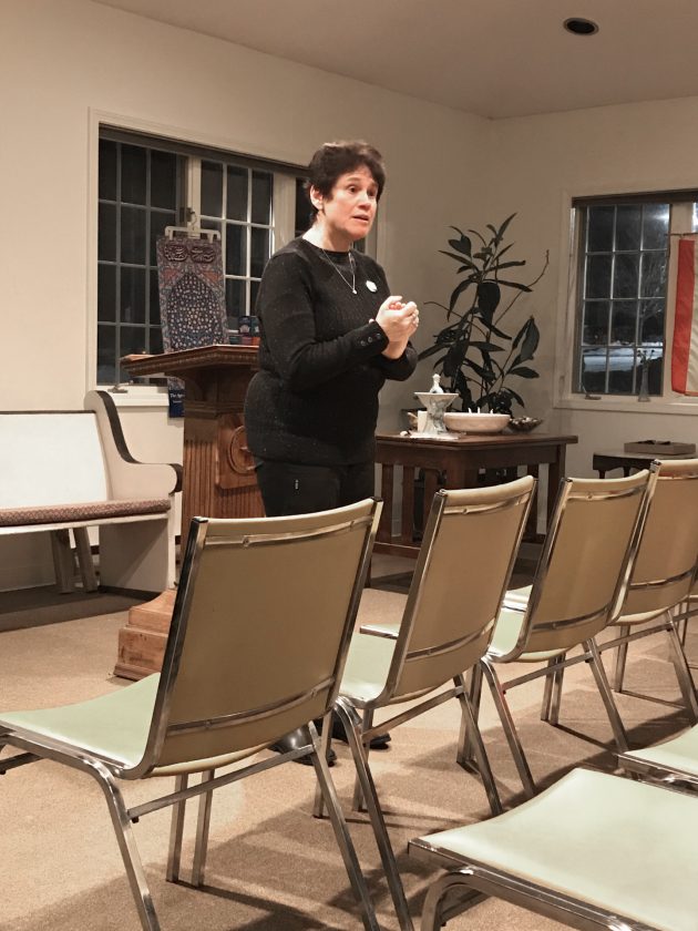 Democratic Congressional Candidate Tracy Mitrano speaks at a public forum on health care Tuesday evening at the Unitarian Universalist Congregation in Jamestown. P-J photo by Jay Young.