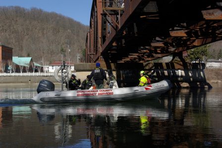The New York State resources assisted on Saturday — including the dive team’s sonar capabilities as well as cadaver dogs with the NY State Police. The Glade VFD boat also followed the Jamestown PD drone.