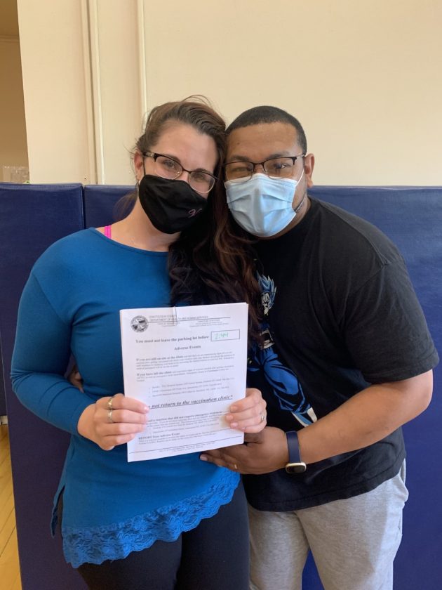 Leslie Anderson-Lantigua and Francisco Lantigua are pictured Thursday after getting their COVID-19 vaccinations.