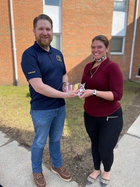 The North Atlantic States Regional Council of Carpenters Local 276 recently donated $5,000 in gift cards to The Salvation Army of Jamestown food pantry. Pictured is NASRCC council representative Jeff Pasnik and Elizabeth Margarito of The Salvation Army of Jamestown.