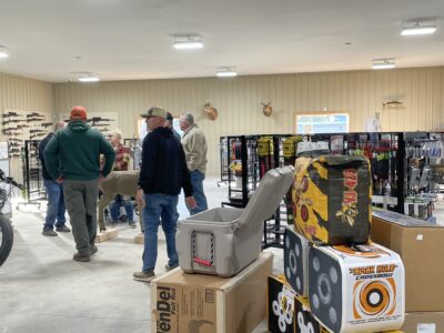 Inside the store are various hunting rifles and shotguns, crossbows, clothing and boots, hunting blinds, ice fishing huts, fishing lures, arrows, ammo and more. He’s even got a power assist bicycle that uses solar power.