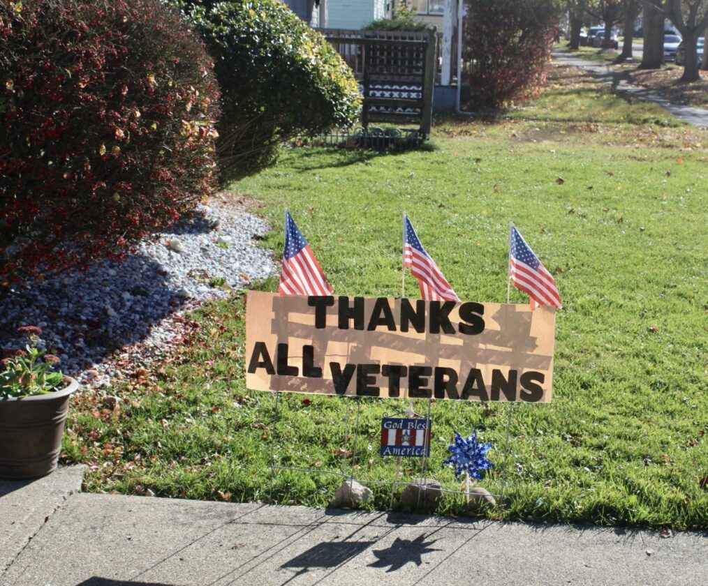 A home on Park Avenue in Dunkirk proudly displays a sign to honor all veterans who served our country. Despite poor weather on some of the days leading up to Veterans Day, the sign remained standing in the lawn without any issue. Photo by Braden Carmen