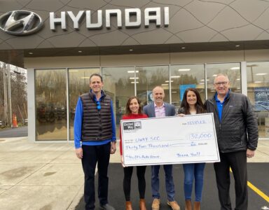 Pictured are Edward Shults III, United Way Executive Director Amy Rohler, Richard Bruce, Jillian Shults and Tim Shults. Seventy-five percent of Shults Auto Group employees contributed to the United Way Campaign, with 100% employee participation at the Shults Hyundai location.
