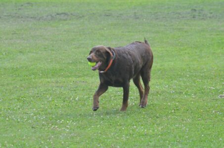 Tucker, with one of his new tennis balls in tow, is the dog whose keen senses led to the capture of Burham.