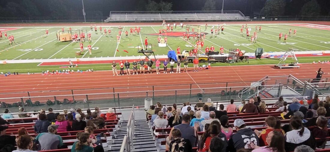The Jamestown High School’s award-winning marching band and color guard members performed a free, open to the public, sampling of this year’s planned performance and routines to showcase the band’s efforts in the weeks leading up to the school year.