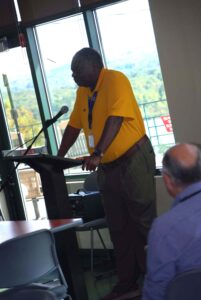 - William “Willy” Brown, the center director for the Cassadaga Job Corps Academy speaks to potential employers, company owners, labor trade union representatives, human resources representatives and project managers prior to taking a tour and the start of the Reverse Job Fair, held at the U.S. Department of Labor’s Center on Thursday. P-J photo by Christopher Blakeslee