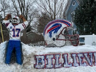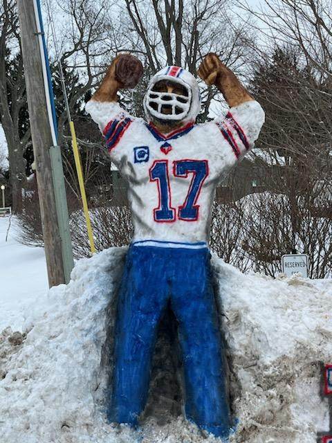 The latest snowy addition is an actual sculpture of the Bills’ starting quarterback.