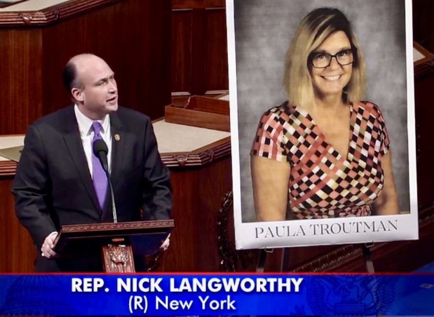 U.S. Rep. Nick Langworthy recognized Troutman with a speech in her memory on Thursday, with her photo proudly displayed for members of Congress to see. “I rise today with a heavy heart to pay tribute to a remarkable individual whose impact on Western New York and the Southern Tier in our educational system is immeasurable,” he said at the beginning of his speech.
