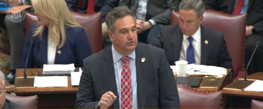 State Sen. George Borrello, R-Sunset Bay, speaks against a bill that would require prisons allow in-person visitation.