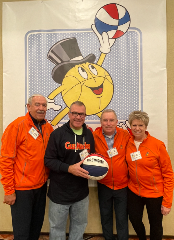 Patrick Smeraldo, center, is joined at the Gus Macker National Convention in Grand Rapids, Mich. in 2023 by, from the left, Mike Fuller, vice president sales & bracketology, Gus Macker; Scott “Gus” McNeal, owner, Gus Macker; and Patty Donovan, vice president marketing and communications, Gus Macker. Submitted file photo
