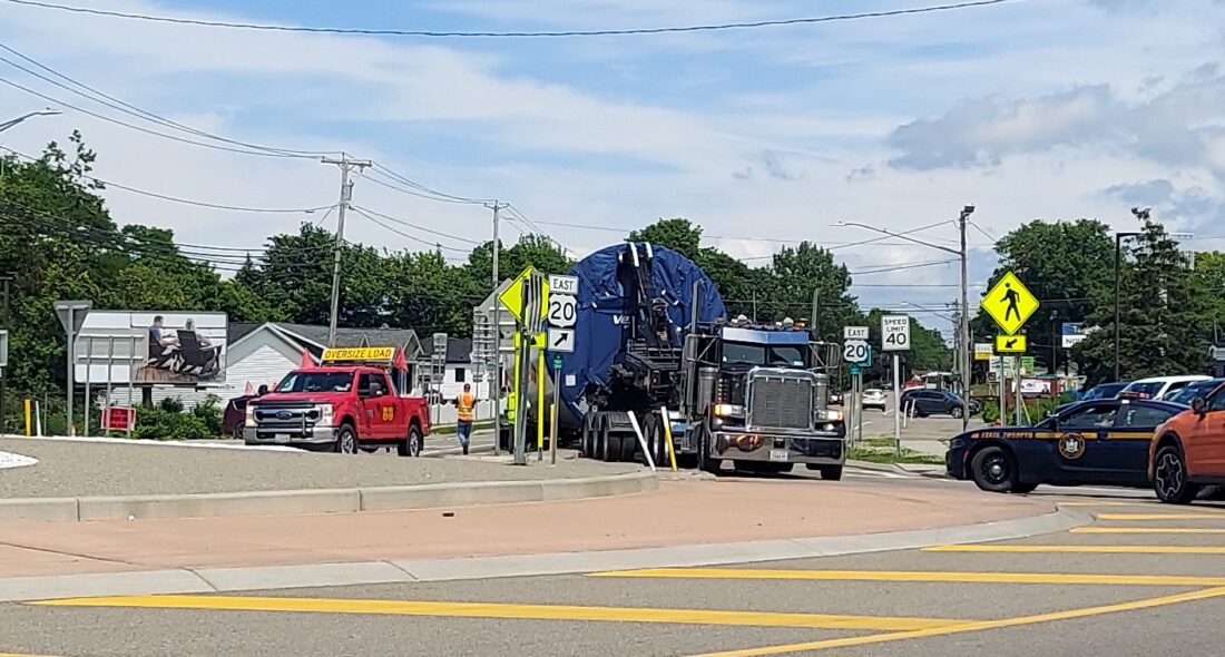 One of the few inconveniences created by the roundabout at Route 20 and 60 included a tractor trailer with an oversized load that tied up traffic in June. P-J file photo