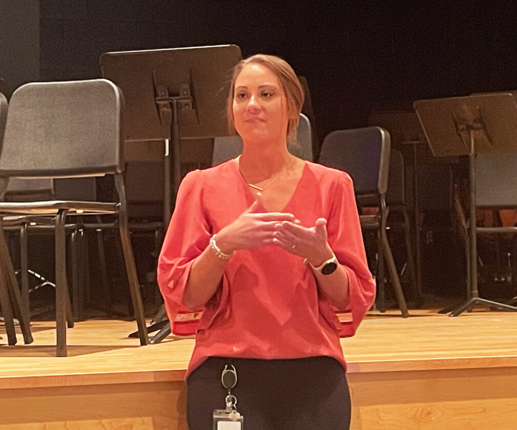Jefferson Middle School Principal Katie Zwald informs the Jamestown Public Schools Board of Education about the school’s journalism club. P-J photo by Michael Zabrodsky