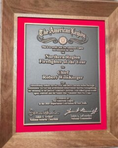 - Pictured is Chief Robert Weiskerger of the Sunset Bay Volunteer Fire Dept. receiving a firefighter of the year award in 2024.