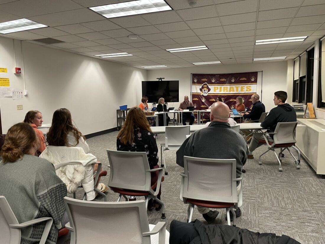 The Clymer School Board heard a presentation on the planned senior trip for this year during their November meeting. P-J photo by Sara Holthouse