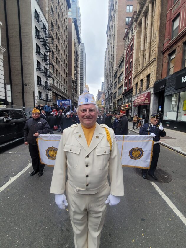 John R. Miga led the New York Legion contingency in the Veterans Day gala event that marched on Fifth Avenue in Manhattan on Nov. 11. Dressed in his ceremonial Commanders Uniform, Miga was out in front of dozens of legionnaires representing the staff and members of the Department of New York.