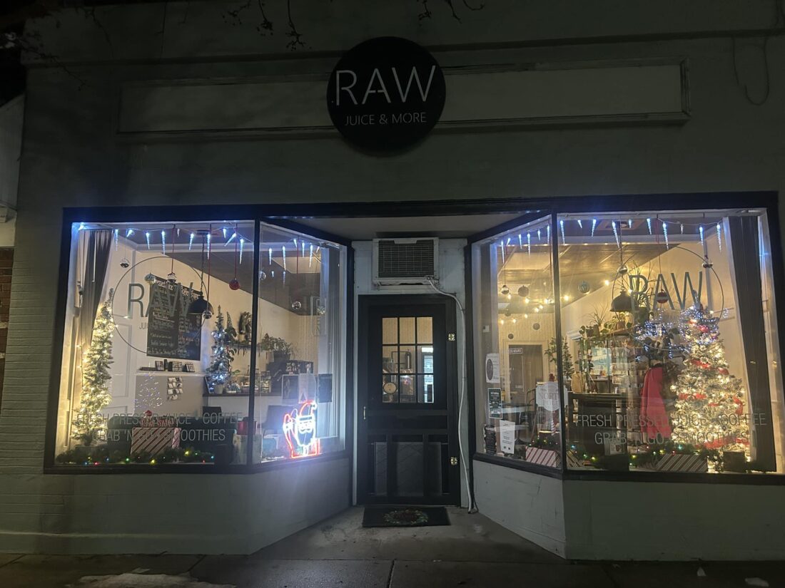 - Raw Juice & More, the location of some festivities, with decor all over the front windows.