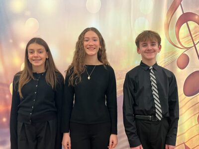- From left to right, Aristea Theofilactidis, Melina Singleton, and John Nelson represented Jamestown’s middle schools at NYSSMA’s Zone 1Junior High Area All-State Festival at Pioneer Central School on Nov. 8.