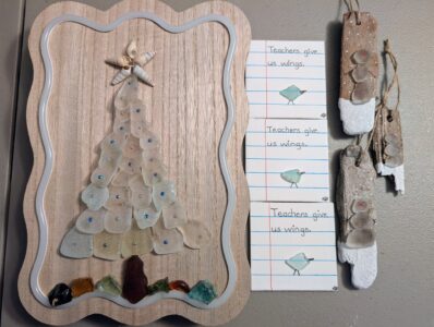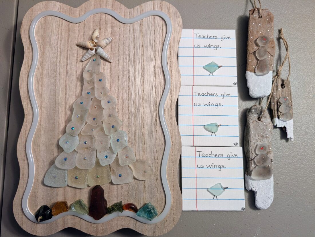 - Various sea glass creations from Laura’s Peace of the Beach.