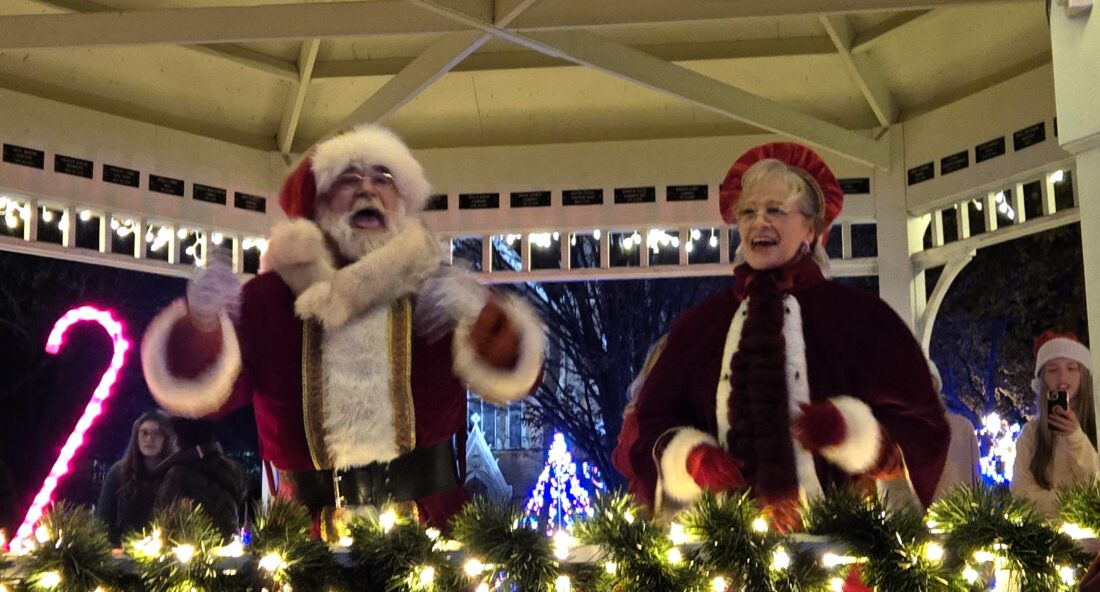 Santa and Mrs. Claus lead the assembled crowd at Moore Park in Westfield in singing “Rudolph the Red Nosed Reindeer.