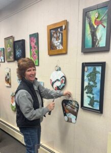 Kelly Hunt is pictured with some of her artwork that is on display in December at the Hazeltine Public Library.
