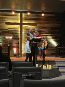 Rick Hooks and his three children, Lane, Atley, and Archer gather to read from the Bible during “Cover to Cover” held over New Years eve, bringing in the new year. Congregants signed up for “shifts” of when to read the Bible during the 4 days that it took to finish. Submitted photos