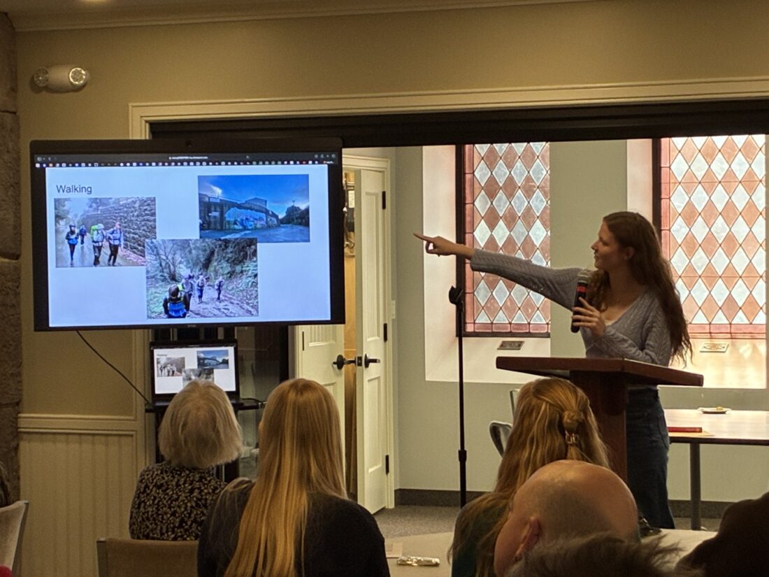 Eve Ludwig discussing some of the sights that the group saw throughout the journey. P-J photo by Owen Reed