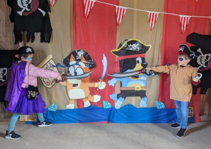 - Two young pirates battle in a Bluey themed funhouse. Submitted photo